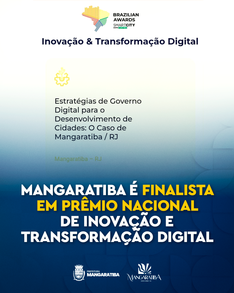 Reconhecimento nacional. A Prefeitura de Mangaratiba acaba de se tornar finalista no prêmio Smart City Brazilian Awards. A cidade está concorrendo na categoria ‘Inovação e Transformação Digital’, com os municípios de João Pessoa (PB) e Recife (PE).