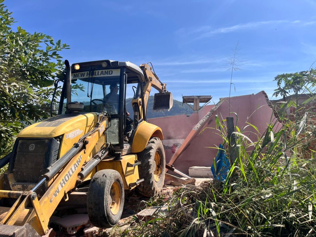 A Prefeitura de Maricá, por meio do Grupo de Apoio Técnico Especializado em Demolições (Gated), realizou nesta sexta-feira (24/05) a quinta ação do ano na região do Taboal, em Itaipuaçu, que é parte da zona de amortecimento do Parque Estadual da Serra da Tiririca. As equipes descaracterizaram um imóvel e demoliram outros cinco, que já estavam desocupados. No total, 26 construções foram retiradas na localidade nesse ano e as famílias receberam novas casas pelo programa ‘Habitar’, iniciativa da Secretaria de Habitação e Assentamentos Humanos.