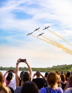 A Prefeitura de Maricá, por meio da companhia Maricá, Arte, Roteiros e Experiências (MARÉ), levou milhares de pessoas à Orla do Parque Nanci, neste sábado (13/12), com as atrações do Natal Brasilidade. Destaque para os loops e parafusos no ar protagonizados pelos pilotos e aeronaves da Esquadrilha Céu, que tiraram o fôlego dos visitantes. Neste domingo acontece a terceira e última apresentação do Balé do Ar, às 17h.