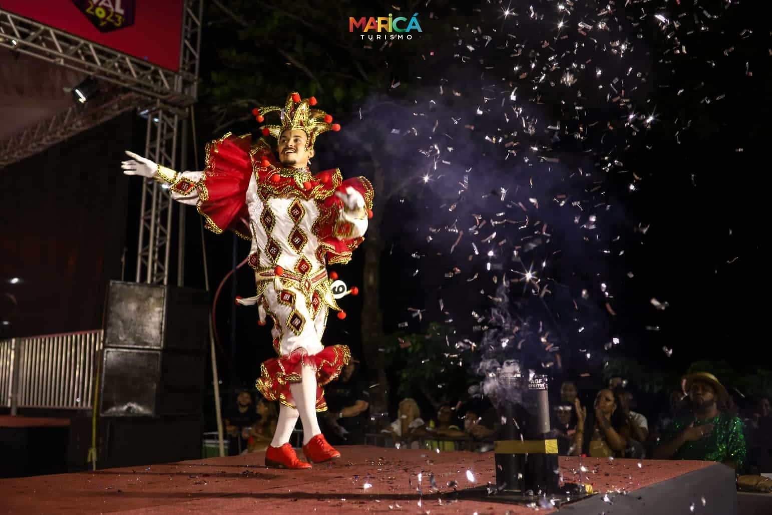 A Prefeitura de Maricá, por meio da Secretaria de Turismo, em parceria com a Liga das Agremiações Carnavalescas de Maricá (Lacam), elegeu neste sábado (04/02) a corte carnavalesca para o Carnaval 2023, no Espaço Gourmet, montado na Rua Álvares de Castro, em Araçatiba. Foram eleitos o Rei Momo Anderson Magalhães, de 27 anos, a Rainha do Carnaval Ana Júlia Carvalho, de 22 anos, e a Princesa Lorena Garcia, de 25 anos.