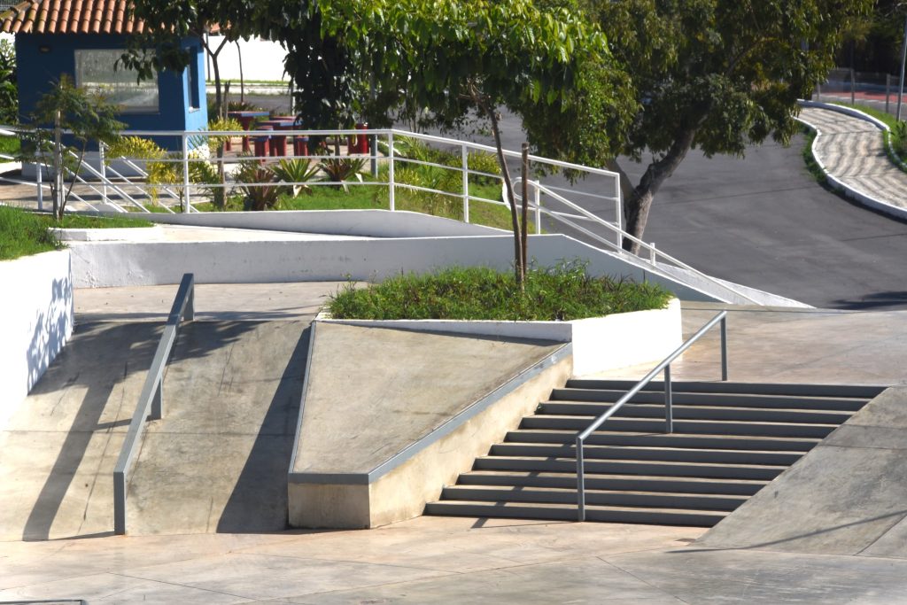 Além da pista principal, o complexo conta com quadra de basquete 3×3, banheiros e uma área de convivência equipada com mesas e bancos, ampliando as possibilidades de uso comunitário.