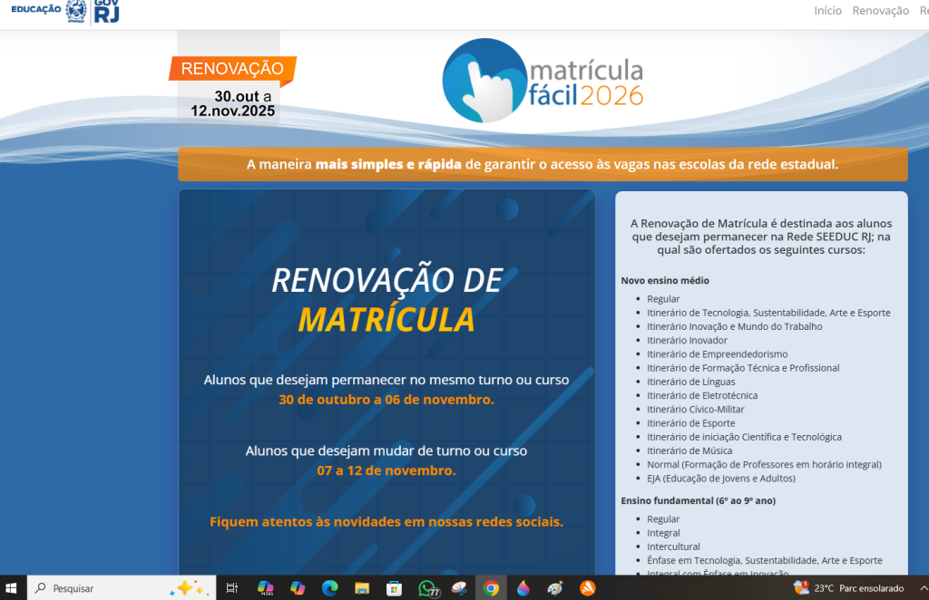 – A partir de 18/12/2025: Resultado da 1ª Fase da Pré-Matrícula nos sites Seeduc e Matrícula Fácil