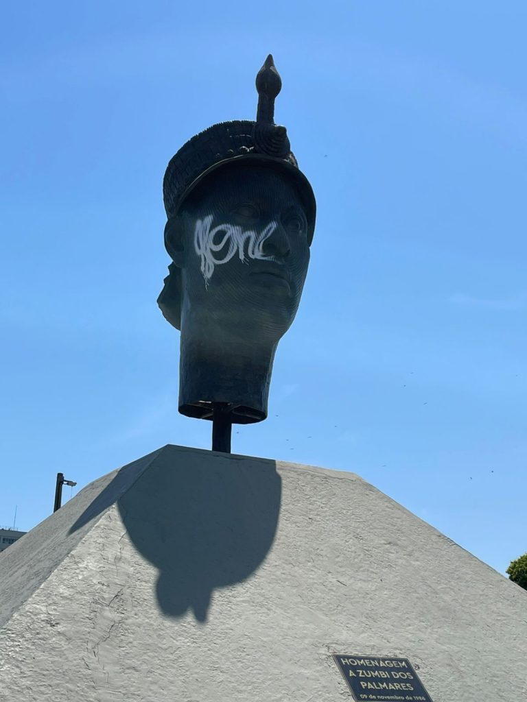 Monumento a Zumbi dos Palmares volta a ser pichado no Centro do Rio