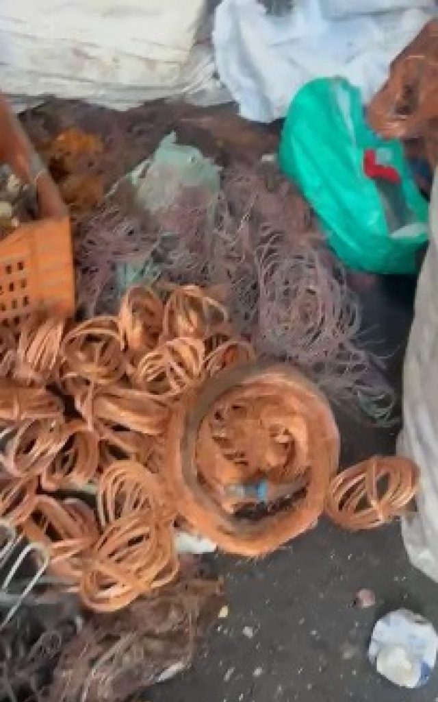 No local, agentes apreenderam grande quantidade de fios de cobre sem procedência comprovada. Além disso, havia uma ligação de energia clandestina.