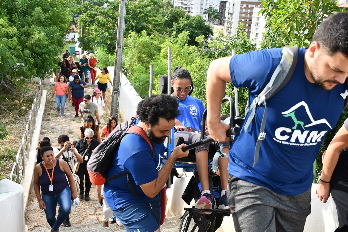 O ponto de encontro foi no Centro de Atendimento ao Turista (CAT) da Boa Viagem. O grupo foi acompanhado por monitores da Neltur, além da supervisora dos CATs, Érica Assis, a coordenadora dos monitores, Cláudia Policarpo, e profissionais da Secretaria de Acessibilidade, incluindo Roberta Souza, Janete Flores e Marcele Figueredo, fisioterapeuta e intérprete de Libras, além de condutores da cadeira Julietti, do Clube de Montanhismo, e cerca de outros 20 participantes.