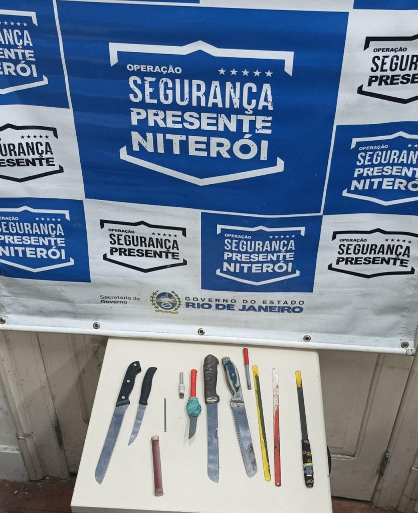 Niterói Presente apreende 10 pessoas com cinco facas, duas serras, um estilete e 10 acessórios para uso de entorpecentes