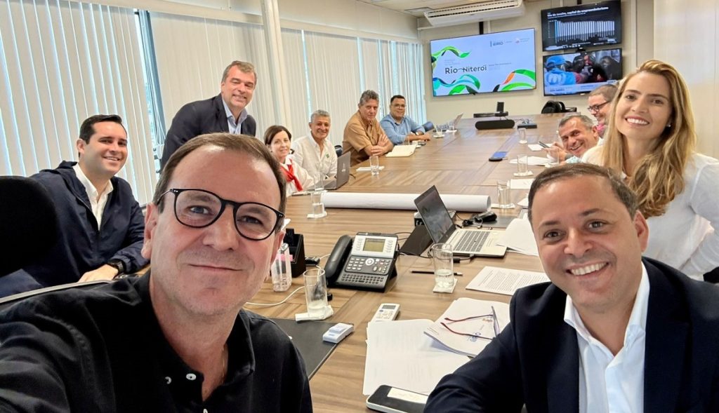 Junto de Rodrigo e Isabel, participaram da reunião com Paes na sede da Prefeitura do Rio o secretário-Executivo de Niterói, Felipe Peixoto, e a secretária do Escritório de Gestão de Projetos (EGP), Katherine Azevedo.