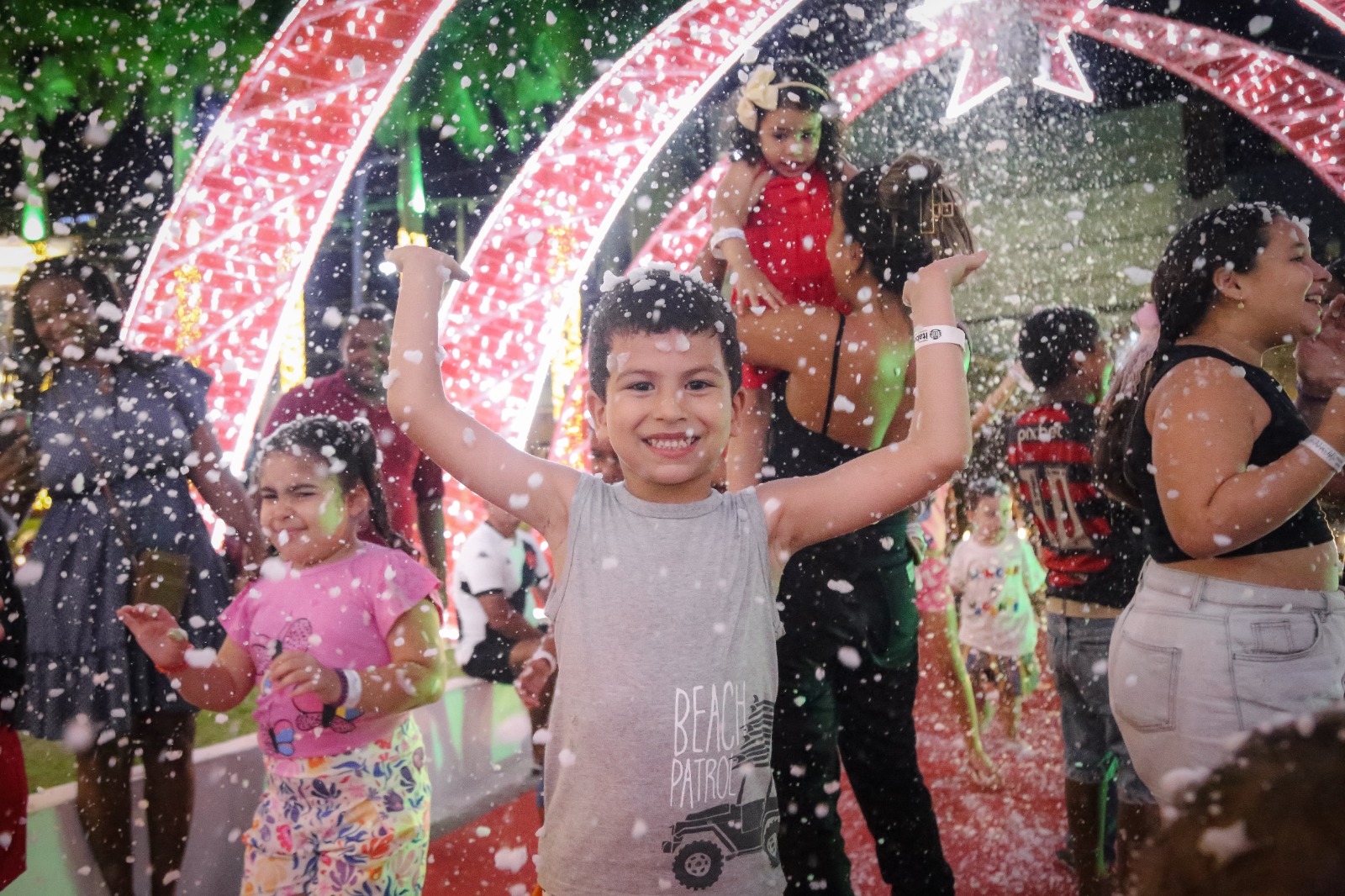 As crianças e adultos se divertiram com as novidades do evento, como os brinquedos gratuitos La Bamba, aviãozinho, roda-gigante e brinquedos infláveis, além da tradicional Casa do Papai Noel, que conta com chaminé temática e serviço gratuito de revelação de fotos, permitindo que as famílias eternizem o momento ao lado do bom velhinho. O trenzinho natalino, com personagens vivos, também fez a alegria de pessoas de todas as idades ao circular pela praça.