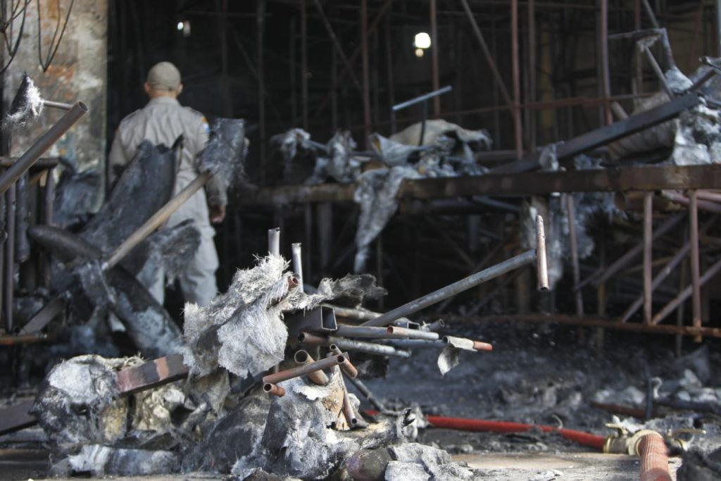 De acordo com o Corpo de Bombeiros, o quartel central foi acionado às 8h10 para combater o incêndio no imóvel. Uma equipe do O DIA esteve no local, na manhã desta quinta-feira, e flagrou as novas chamas que surgem dentro dos barracões.