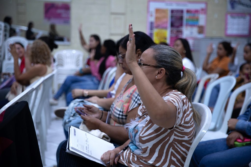 Equipe oferece suporte e atividades voltadas ao empoderamento feminino em local temporário