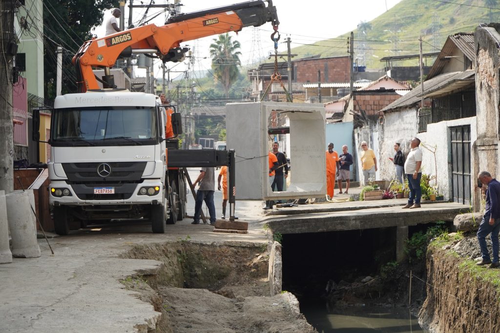 A Secretaria de Desenvolvimento Urbano da Prefeitura de São Gonçalo realizou, na manhã desta sexta-feira (25), a instalação de galerias celulares no canal que passa pela Travessa Figueiredo, na Venda da Cruz.