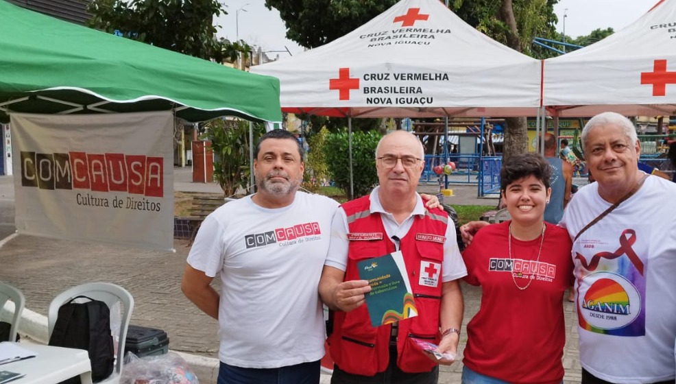 Neste domingo (1º), a ComCausa realizou, em parceria com a Aganim, o Projeto Fusão, a Cruz Vermelha de Nova Iguaçu e a Secretaria de Saúde da Prefeitura de Mesquita, uma importante ação na Praça Elisabete Paixão, no centro de Mesquita, na Baixada Fluminense. A iniciativa teve como objetivo conscientizar a população sobre a prevenção e o tratamento do HIV/AIDS, reforçando a importância do cuidado coletivo com a saúde pública.