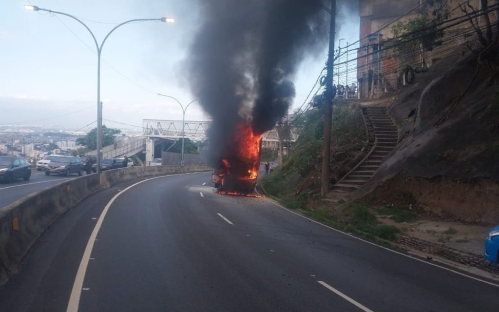 Ônibus incendiado causa interdições na Estrada Grajaú-Jacarepaguá