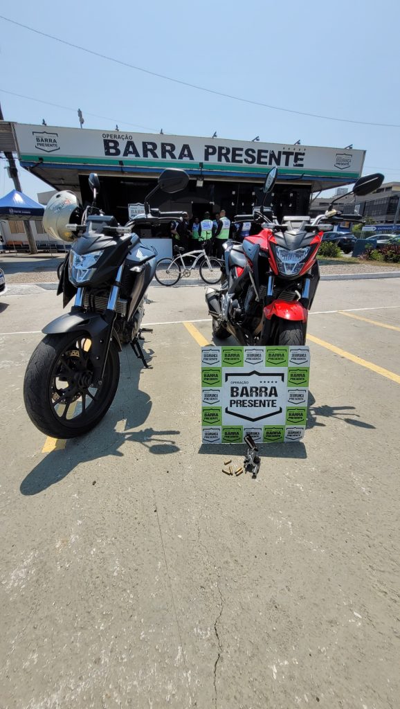 Imediatamente, a equipe do Barra Presente comunicou, via rádio, as características da moto utilizada pelos suspeitos em fuga — uma de cor vermelha. Em resposta, o efetivo do Barra Presente, em ação conjunta com os policiais do Recreio Presente, localizou e interceptou os envolvidos.