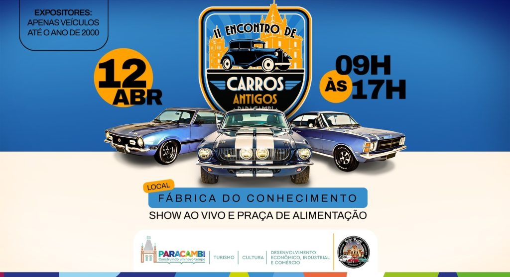 Paracambi receberá, no próximo dia 12 de abril, o 2º Encontro de Carros Antigos. Promovido pela Prefeitura, por meio da Secretaria Municipal de Turismo, o evento será realizado na Fábrica do Conhecimento, das 9h às 17h, reunindo apaixonados por automobilismo e admiradores de veículos clássicos de diferentes épocas.