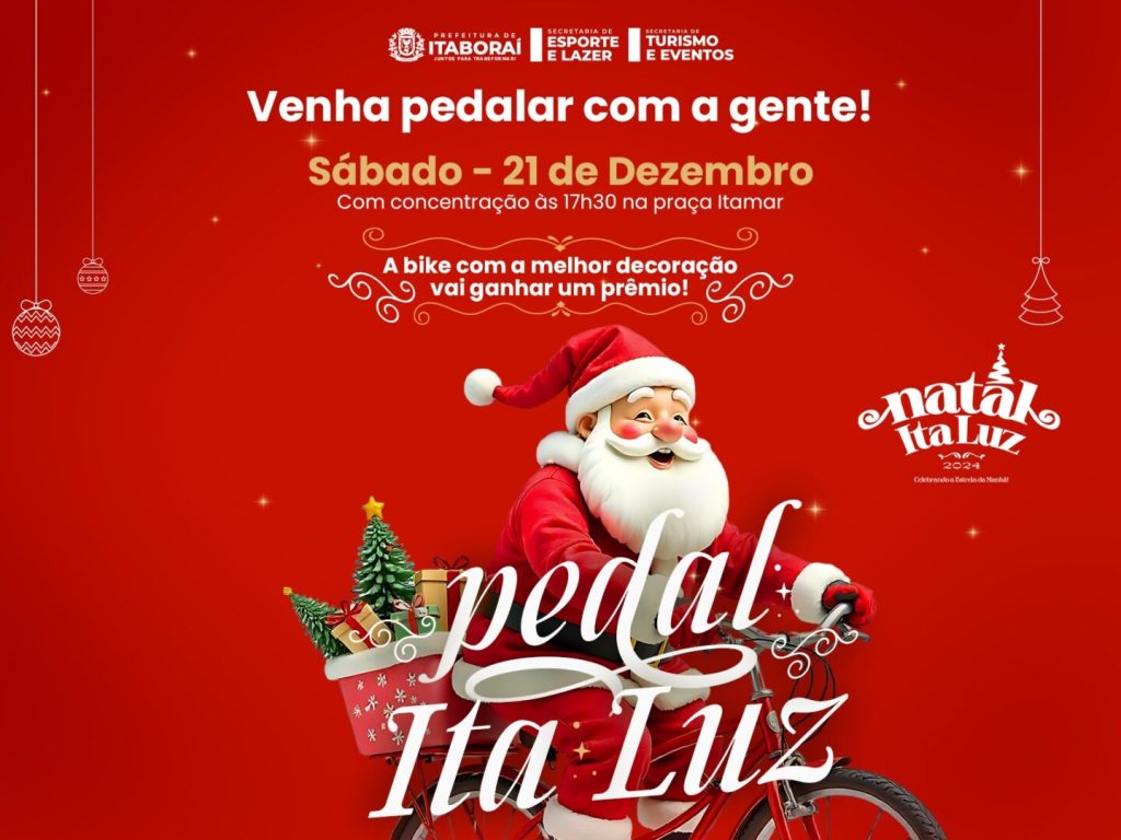 Como parte da programação do Natal Ita Luz, a Prefeitura de Itaboraí, por meio das secretarias municipais de Esporte e Lazer (SEMEL) e de Turismo e Eventos (SEMTUR), realiza pela primeira vez o Pedal Ita Luz, um passeio ciclístico que promete iluminar as ruas da cidade e levar alegria ao Centro. A novidade acontecerá no próximo sábado (21/12), com início às 17h30 e concentração na Praça Itamar da Silva Junior. Os interessados em participar devem realizar a inscrição através do site: https://eventospmi.ib.itaborai.rj.gov.br/pedal-natal-ita-luz. Vale destacar que a organização do evento incentiva os participantes a enfeitarem suas bicicletas de forma criativa e iluminada.
