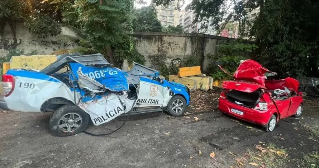 Uma perseguição policial por 27 km terminou com 4 mortos no Jardim Botânico, Zona Sul do Rio de Janeiro, na madrugada desta quarta-feira (22), após 2 carros capotarem.