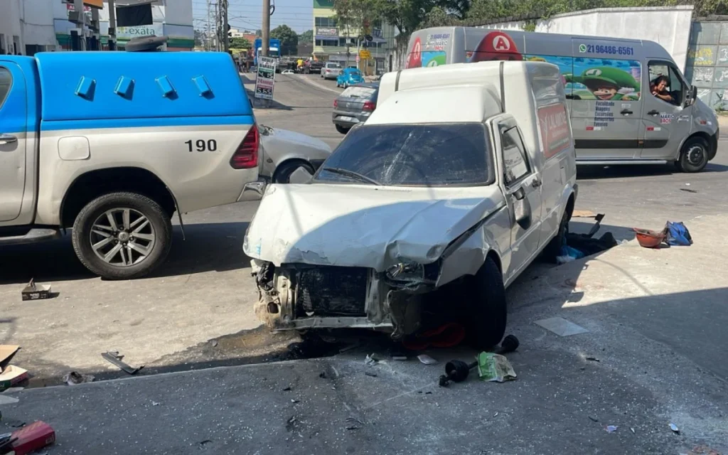 Um criminoso morreu e outro foi preso, na manhã desta sexta-feira (16), após troca de tiros com PMs terminar em acidente no bairro Jardim Primavera, em Duque de Caxias, Baixada Fluminense. Antes de colidir carro roubado contra um poste, os bandidos atropelaram uma idosa na Avenida Visconde de Itaúna. A vítima precisou ser socorrida.