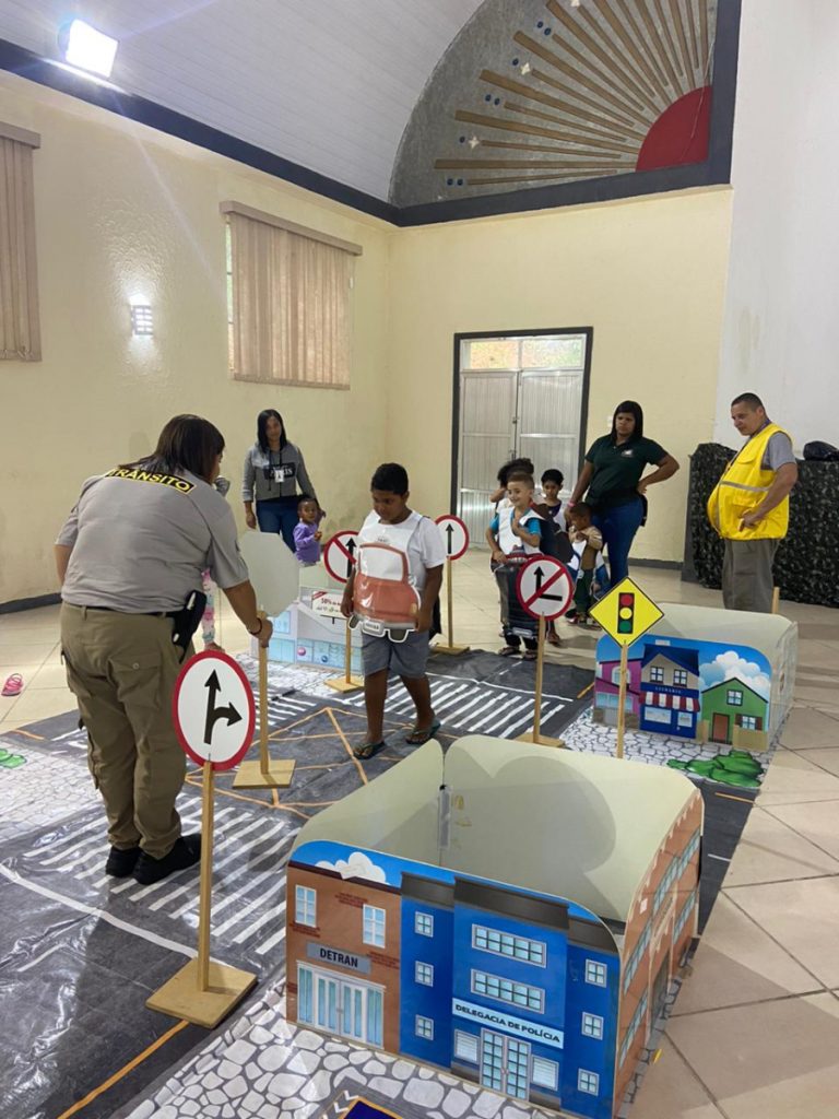 As atividades do Espaço Seguro e Amigável aconteceram nesta segunda-feira (25), na sede do 32º Batalhão de Infantaria Leve de Montanha. As crianças e adolescentes vítimas das chuvas no Alto Independência participaram de atividades esportivas, xadrez, Educação para o Trânsito e outras ações.