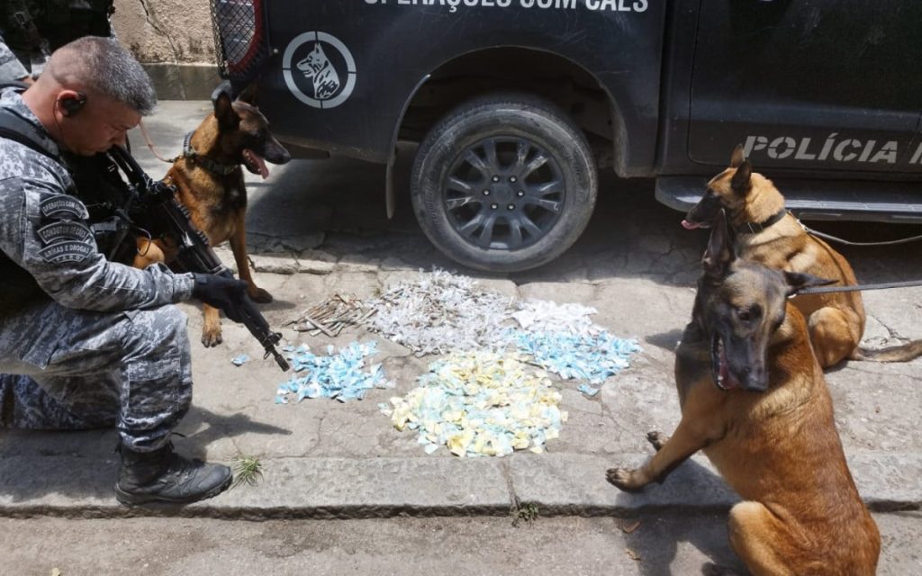 Na operação desta sexta-feira (27), um criminoso foragido foi capturado na comunidade. Além disso, equipes do BAC apreenderam, com auxílio dos cães farejadores, 680 tiras de maconha, 600 pedras de crack e 240 pinos de cocaína no interior da comunidade.