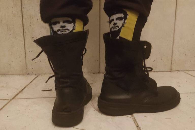 Folha conversou com um sargento que usa as meias estilizadas com o rosto do ex-presidente durante patrulhamento.