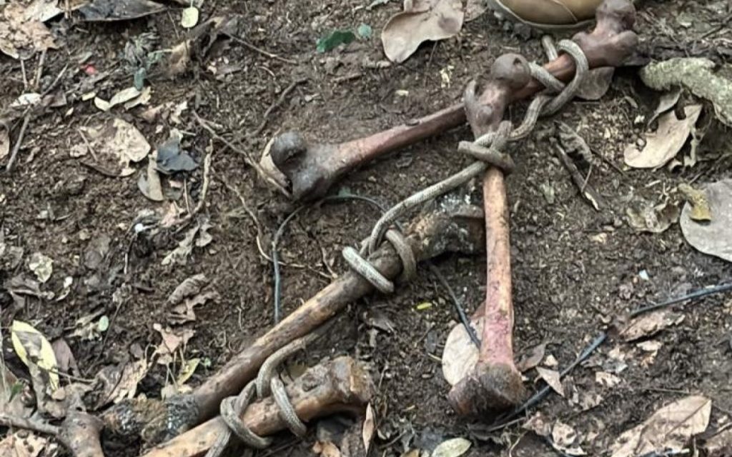 As equipes vasculharam a área de mata da comunidade e encontraram um poço. Com auxílio de uma corda, os agentes retiraram ossadas.