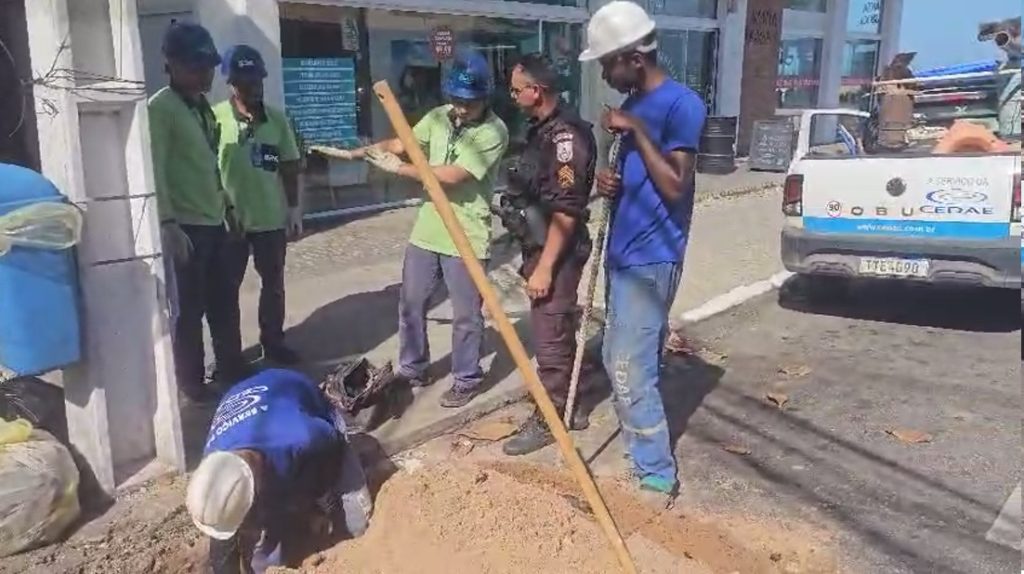 Polícia Militar flagra ligação clandestina de água em centro comercial na orla de Cavaleiros, em Macaé