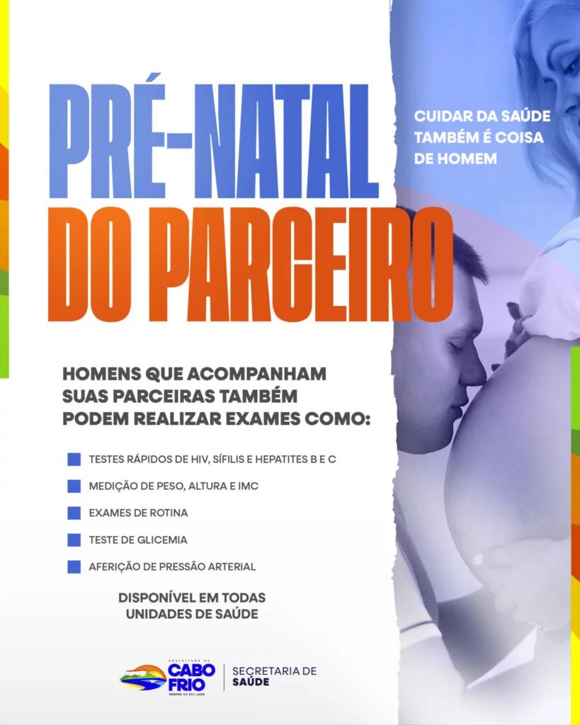 A gestação é um momento ímpar na vida não apenas da mulher, mas de toda a família. Nesse sentido, o envolvimento consciente e funcional do homem como figura paterna responsável e participativa traz benefícios biopsicossociais para a mãe, o bebê e o próprio homem. Por esse motivo, a Prefeitura de Cabo Frio, por meio da Secretaria de Saúde, implantou o programa “Pré-natal do Parceiro”, uma iniciativa do Ministério da Saúde vigente desde 2016.