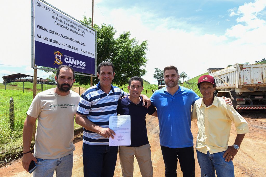 Após inspecionar nesta quarta-feira (11) estradas no interior do distrito de Morro do Coco, o Prefeito Wladimir Garotinho, acompanhado do Secretário de Obras, Fábio Ribeiro, do Subsecretário da pasta, José Fernando Guedes, além de engenheiros da secretaria e do vereador pastor Marcos Elias, assinou Ordem de Serviço (OS) para início das obras de reconstrução da estrada que liga a localidade de Pedra Lisa à sede do distrito.