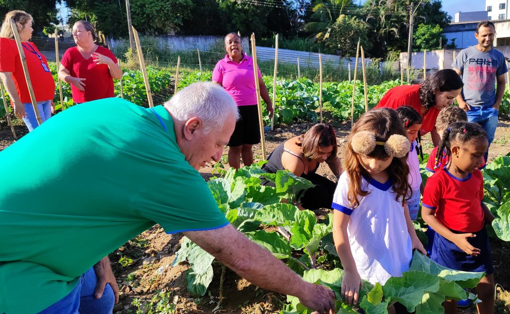 Naquela oportunidade, Alfredão esteve acompanhado dos alunos do Jardim de Infância Municipal Professora Maria Madalena Magacho, que tiveram a chance de aprender um pouquinho mais, sobre os devidos cuidados com a horta, plantio, colheita etc.