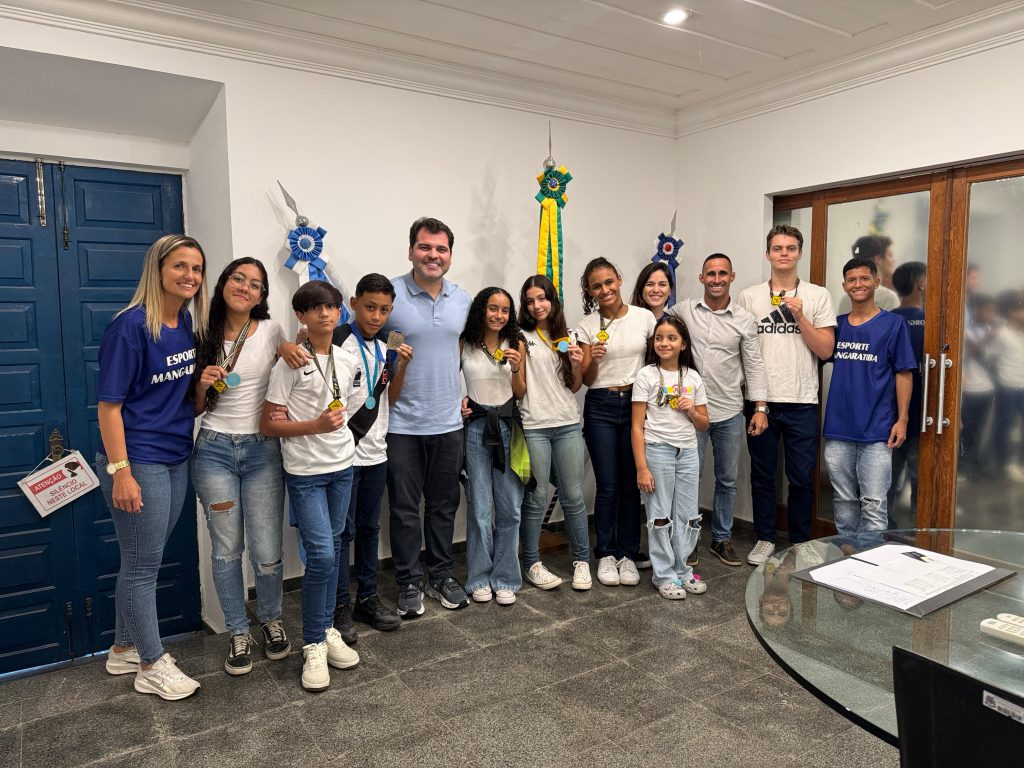 Prefeito de Mangaratiba recebe alunos medalhistas em competição de natação