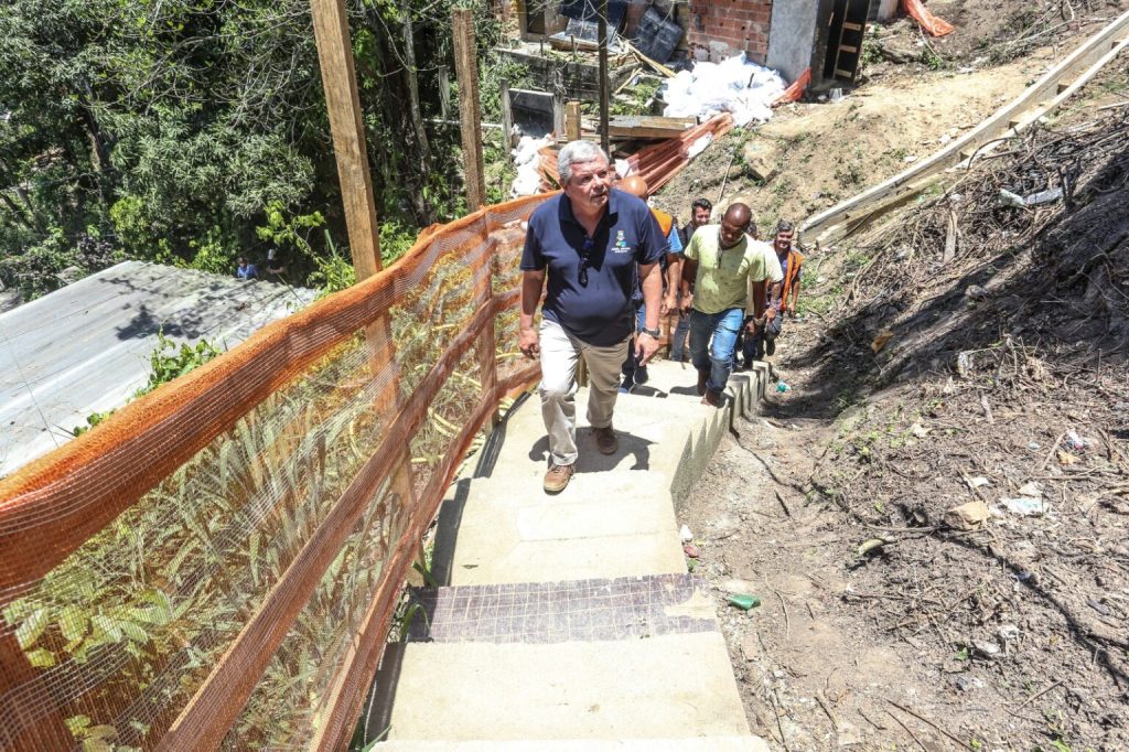 Prefeito de Niterói Axel Grael vistoria obras de contenção de encostas na Grota do Surucucu
