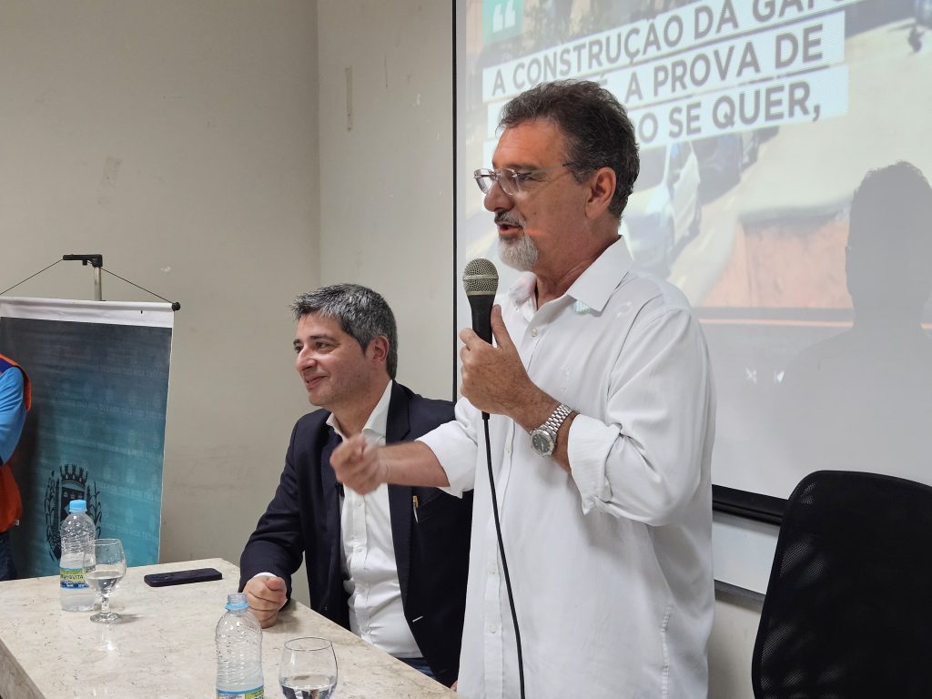 Na manhã desta sexta-feira (14), o prefeito Joa recebeu o senador Carlos Portinho para a reunião de lançamento da obra de construção da Galeria de Drenagem e Águas Pluviais do Centro. O evento, realizado no auditório da OAB, na Praça São Sebastião, reuniu autoridades, moradores e representantes do setor empresarial e de entidades locais.