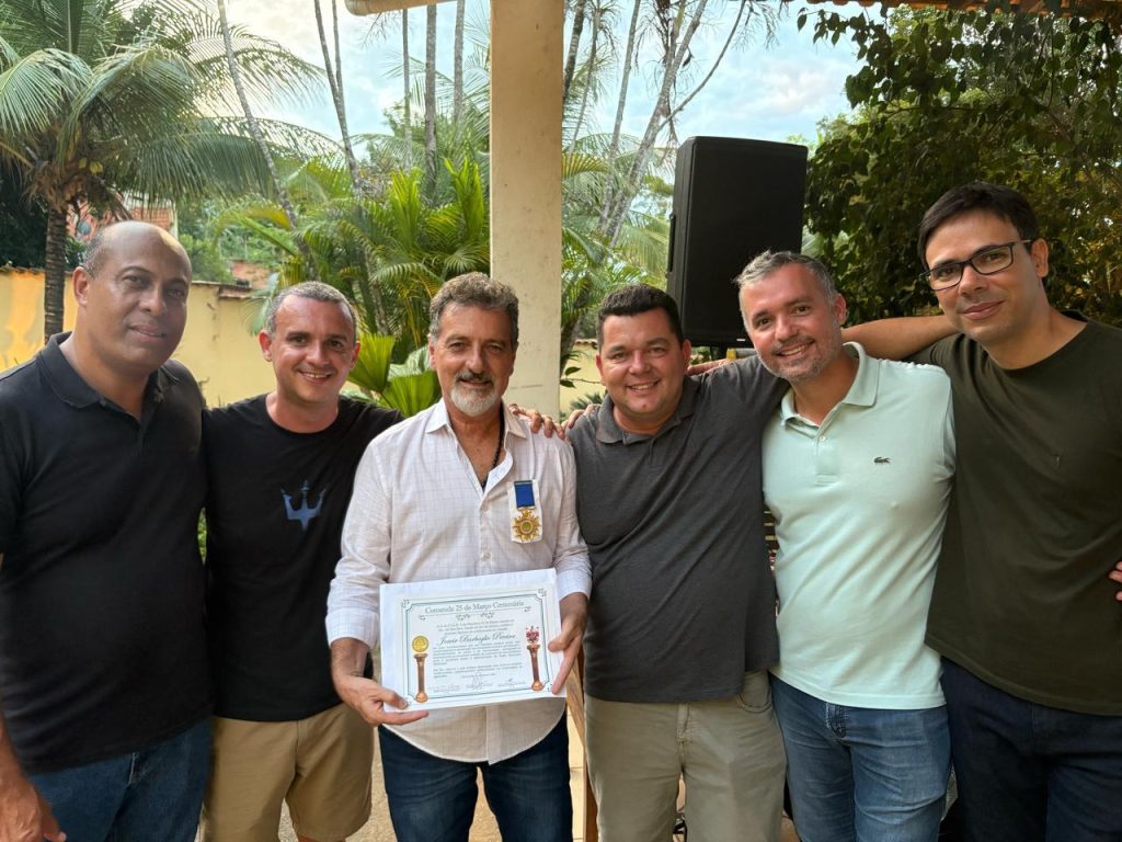 No último sábado (22), a Loja Maçônica 25 de Março celebrou seu 128º aniversário com uma solenidade histórica que contou com a presença de autoridades e membros da instituição. Durante o evento, o prefeito de Três Rios, Joacir Barbaglio, foi agraciado com a “Comenda 25 de Março Centenária”, uma honraria tradicionalmente concedida apenas a integrantes da Maçonaria que se destacam por relevantes serviços sociais.