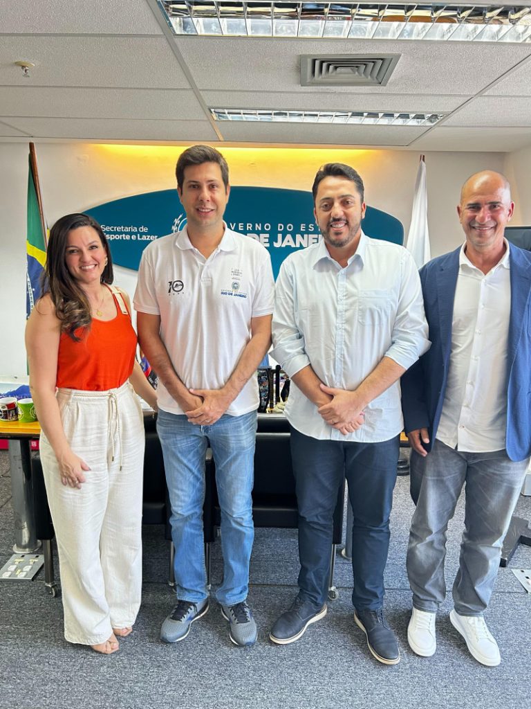 O prefeito de Varre-Sai, Lauro Fabri, acompanhado do secretário municipal de Esportes, Polaco, esteve no Rio de Janeiro em uma agenda estratégica na Secretaria Estadual de Esportes. Durante a reunião com o secretário estadual de Esportes, Rafael Picciani, foram discutidas importantes parcerias entre o estado e o município para impulsionar o desenvolvimento de projetos esportivos em Varre-Sai.