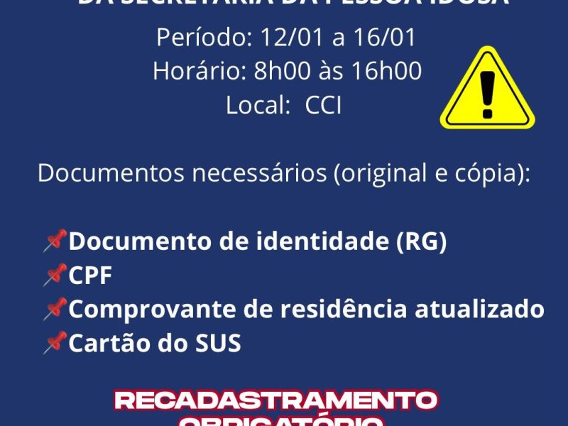 A Secretaria reforça a importância de que todos os idosos atendidos pelo CCI compareçam dentro do prazo estabelecido para evitar a suspensão de atendimentos e benefícios.