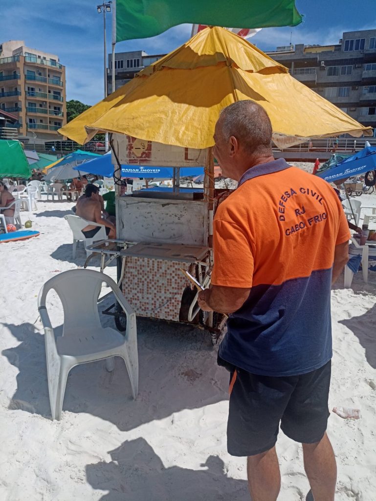 A Prefeitura de Cabo Frio, em uma ação conjunta conduzida pela Superintendência de Defesa Civil em parceria com a Coordenadoria de Posturas, realizou uma blitz educativa na Praia do Forte neste sábado (17) e domingo (18). O objetivo é para verificar a segurança dos equipamentos utilizados pelos comerciantes na praia, visando garantir o cumprimento das leis municipais e demais legislações pertinentes.