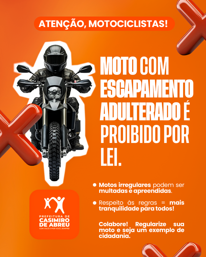 A Prefeitura de Casimiro de Abreu dará início a uma operação de fiscalização para coibir o uso de escapamentos adulterados em motocicletas. A ação tem como objetivo reduzir a poluição sonora e garantir mais tranquilidade para a população.
