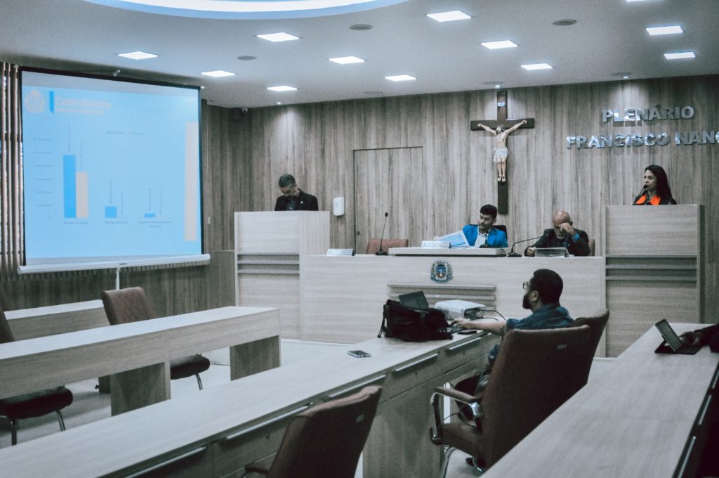 Durante a apresentação, a Controladora Geral do município, Angélica Wermelinger, expôs os dados relativos às receitas e despesas do período. A arrecadação total alcançou R$ 748,9 milhões, o que representa 59% do previsto para o ano, de R$ 1,227 bilhão. Entre os destaques, as receitas tributárias atingiram 82% da meta estabelecida, enquanto as receitas patrimoniais superaram a previsão em 183%.