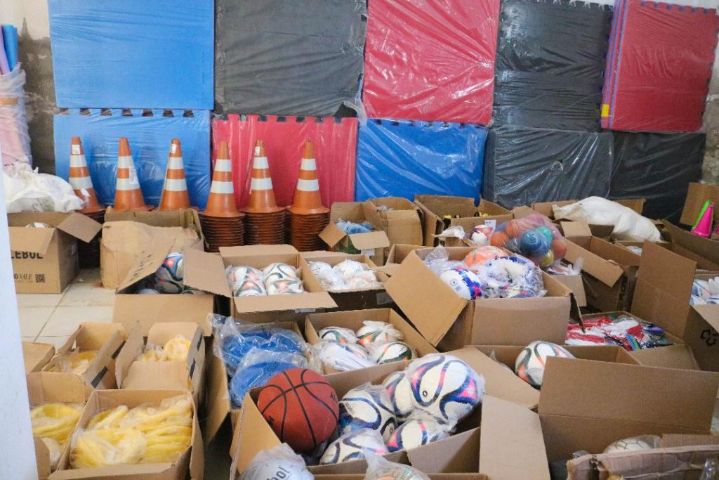 Ao todo são quase 3.000 itens, entre traves, bolas de futsal, handebol, cones, tapetes de E.V.A.