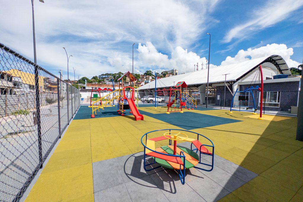 A praça oferece academia ao ar livre, área para calistenia e um parque para as crianças com piso emborrachado. A pavimentação conta com blocos intertravados coloridos, concreto e a tradicional pedra portuguesa vermelha nas calçadas.