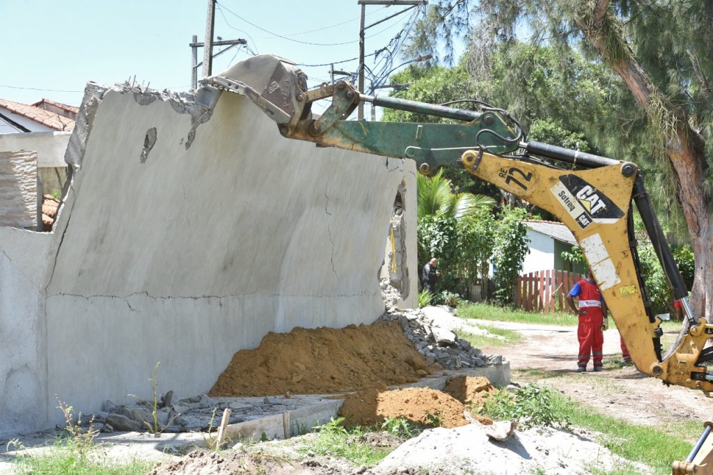 Antes de demolir a obra, a equipe efetuou todos os processos administrativos que incluem notificação, intimação e embargo. O proprietário procurou a Secretaria de Urbanismo para legalizar o futuro imóvel, mas o pedido foi negado por se tratar de uma faixa marginal, o que é proibido por lei qualquer tipo de construção. Na ação, foram utilizados dois caminhões e uma retroescavadeira.