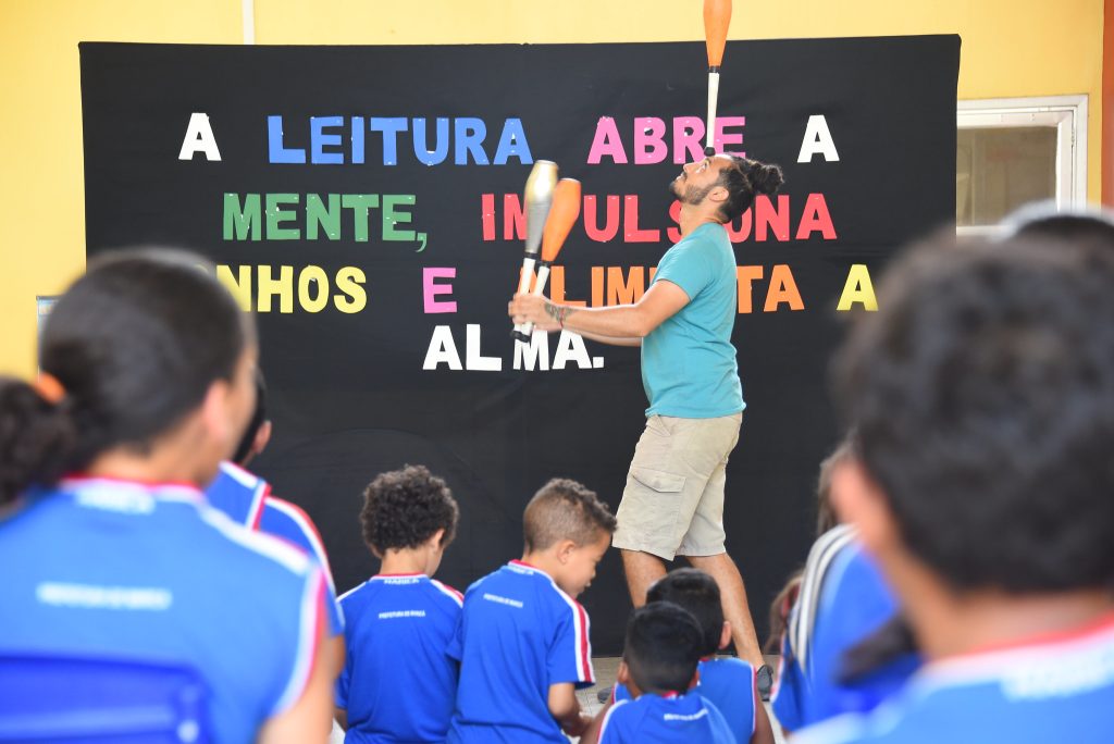 Desta vez, a iniciativa, que já passou por diversas escolas do município, promoveu um sarau de sustentabilidade e proteção ambiental. Após apresentação teatral sobre conscientização ambiental, os alunos receberam instrumentos feitos com resíduos recicláveis, para dançar e cantar com o músico Lucas Roberto e, depois, assistiram à apresentação de artes circenses com David Martinez.