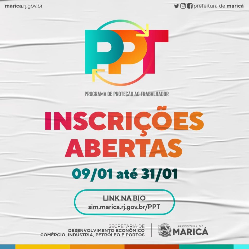 A Prefeitura de Maricá inicia nesta segunda-feira (09/01) as inscrições para o Programa de Proteção ao Trabalhador (PPT), criado para incentivar a formalização e garantir direitos a esses profissionais. Neste primeiro momento, poderão se cadastrar os beneficiários do Programa de Amparo ao Trabalhador (PAT), desde que estejam inscritos como Microempreendedores individuais (MEI) ou cooperados e atuem efetivamente na função. Também poderão se cadastrar taxistas permissionários e ambulantes que possuem licença de uso do solo ou que tenham pedido feito até 1° de dezembro de 2022.