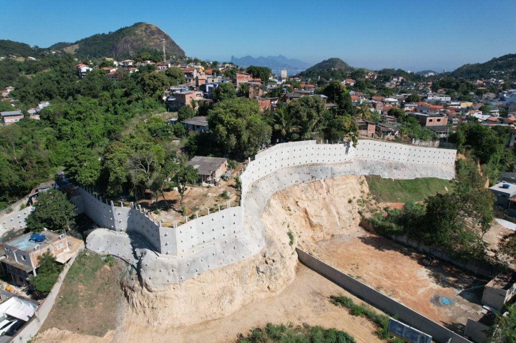 A Prefeitura de Niterói concluiu as obras de estabilização de taludes na comunidade do Caranguejo, localizado no Largo da Batalha, região de Pendotiba. Com investimento de R$ 10,7 milhões, o local recebeu intervenções em cinco pontos com técnicas como cortina atirantada que cobre uma área de 1129 m² e solo grampeado com geomanta. Além da contenção, foi construído um novo sistema de drenagem, revitalização dos acessos, e a instalação de guarda-corpo.