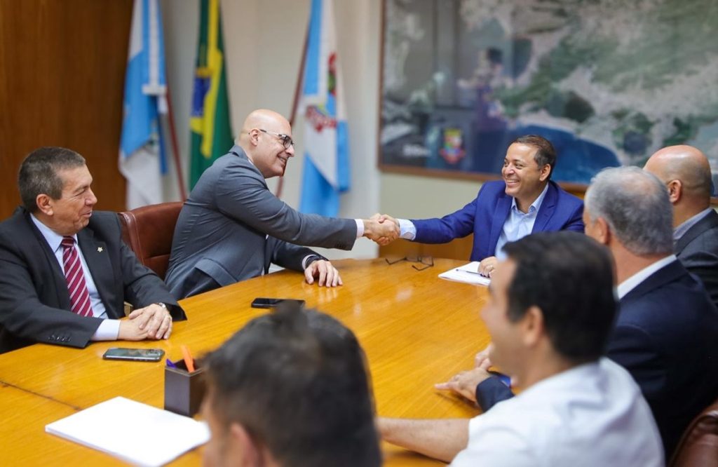 O prefeito Rodrigo Neves recebeu, nesta segunda-feira (27), o secretário da Polícia Civil do Estado do Rio de Janeiro, delegado Felipe Curi, para a assinatura do acordo de cooperação para a criação da Cidade da Polícia, em Niterói. A Prefeitura vai investir R$ 4 milhões na parceria, que tem previsão de entrega em janeiro de 2026.