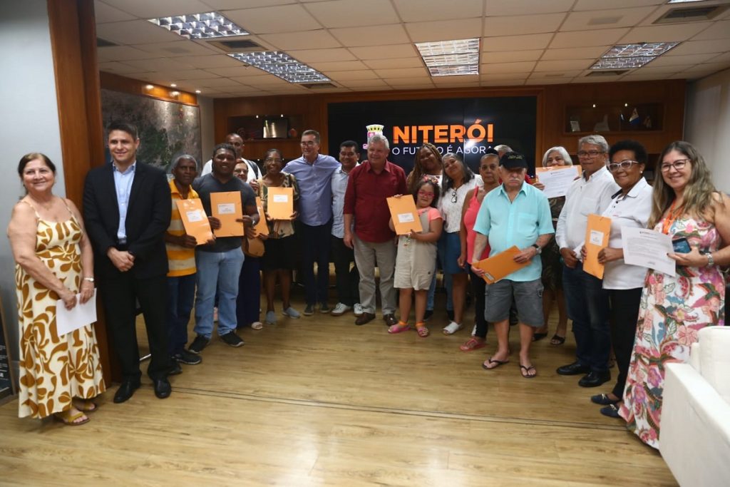O prefeito de Niterói, Axel Grael, entregou os títulos de propriedade às 12 famílias e destacou o trabalho de regularização fundiária no município.