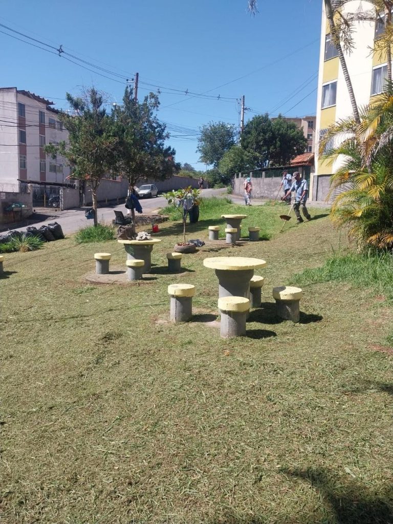 Já no Conjunto Vale das Rosas, no Jardim Califórnia, está sendo realizado o serviço rotineiro de manutenção da praça local e limpeza nas ruas, com serviços de capina e retirada de entulho. Nesse trabalho estão sendo utilizados equipamentos como máquina retroescavadeira, caminhão e roçadeira por uma equipe de oito servidores. O serviço foi iniciado na sexta-feira, 1º de novembro, e segue sem data para terminar.