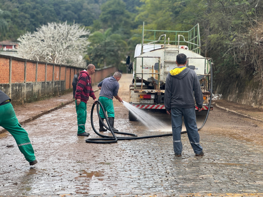 A Prefeitura acompanhou na manhã deste sábado (09/08), o trabalho de limpeza das equipes da Comdep em pontos de Nogueira e Itaipava, regiões mais atingidas pela chuva de sexta-feira (08/09). Uma pipa d’água e caminhões foram usados para limpeza das vias e retirada de galhos e árvores.