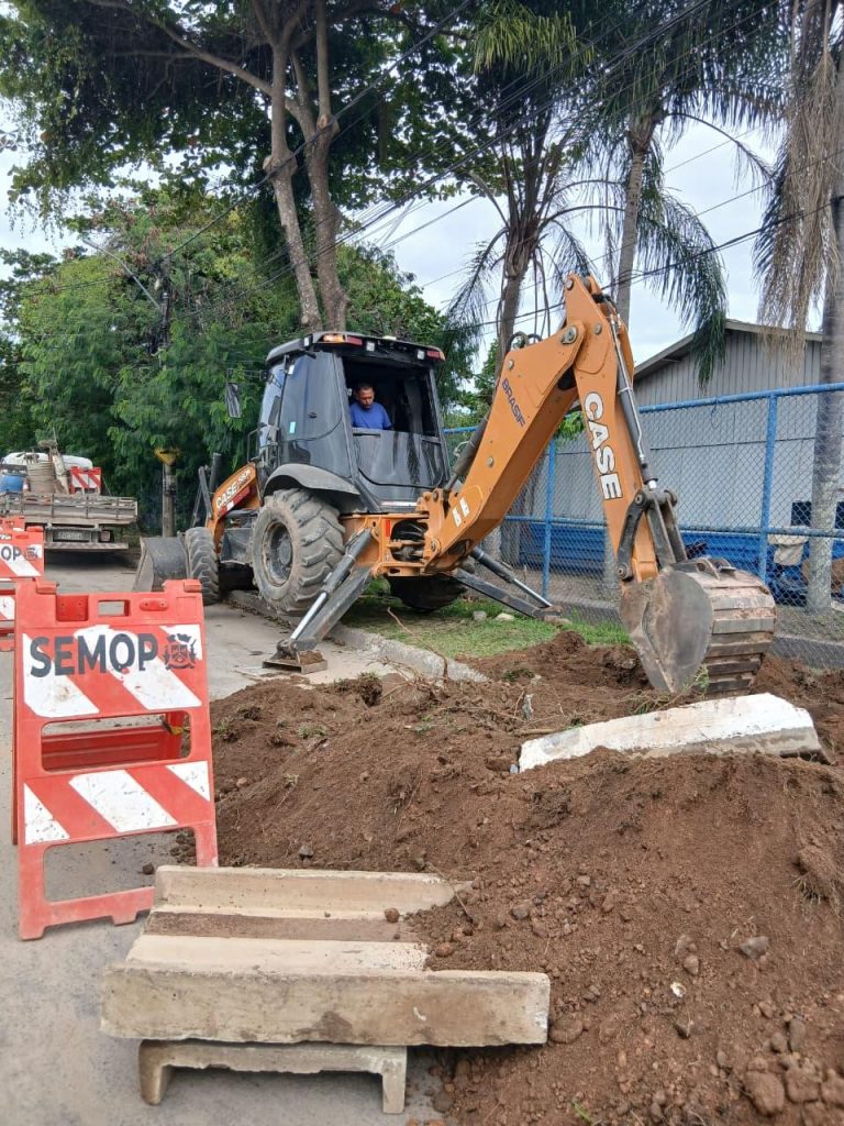 Esta semana, o cronograma incluiu mais uma ação para corrigir problemas crônicos de alagamentos na Rua Duque de Caxias, no Chácara Mariléa. A equipe está atuando, com maquinário, na manutenção e ampliação do sistema de drenagem pluvial da Subsecretaria de Serviços Públicos, beneficiando toda a área do entorno, que sofria constantemente com o acúmulo da água das chuvas, incluindo as ruas Duque de Caxias e Acerbal Pinto Malheiros.
